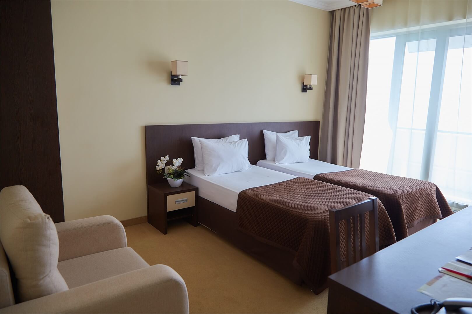 - Комфортные номера и питание: разные категории номеров и сбалансированное меню.